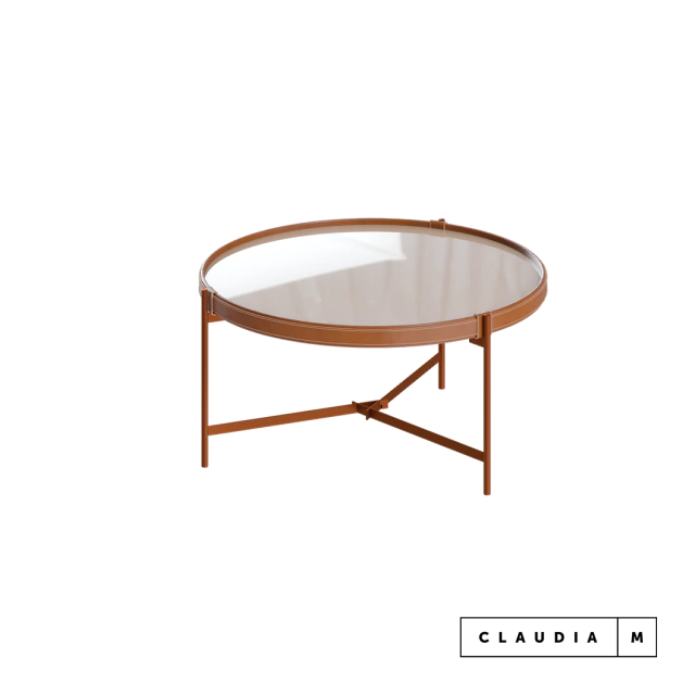 Realizada en estructura de patas metálicas con acabado cobre o champagne, la tapa viene en color blanco laqueado o con espejo, con el borde revestido en cuerina color marrón. También esta disponible en combo, mezclando los tamaños.
