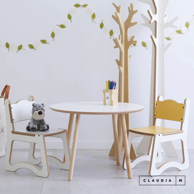 Mesita Infantil realizada en MDF y laminada en color blanco. Patas color paraiso natural. Consultar por sillitas y banquetas.