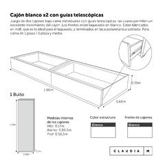 Es para 2 colchones de una plaza 190x80m o en plaza y media para 2 colchones de 190x90m. Ambas camas son aptas para colchones de hasta 0,25cm de altura.