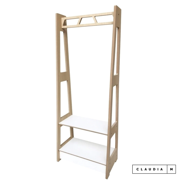 Perchero Ema realizado en melamina de 18mm de espesor. La estructura viene combinada en color Roble y Blanco.