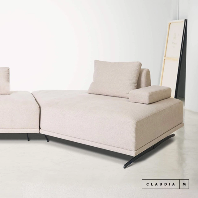 El sofá Lotus es un conjunto modular que consta de cuatro piezas de diferentes tamaños, que te permiten crear distintas configuraciones.